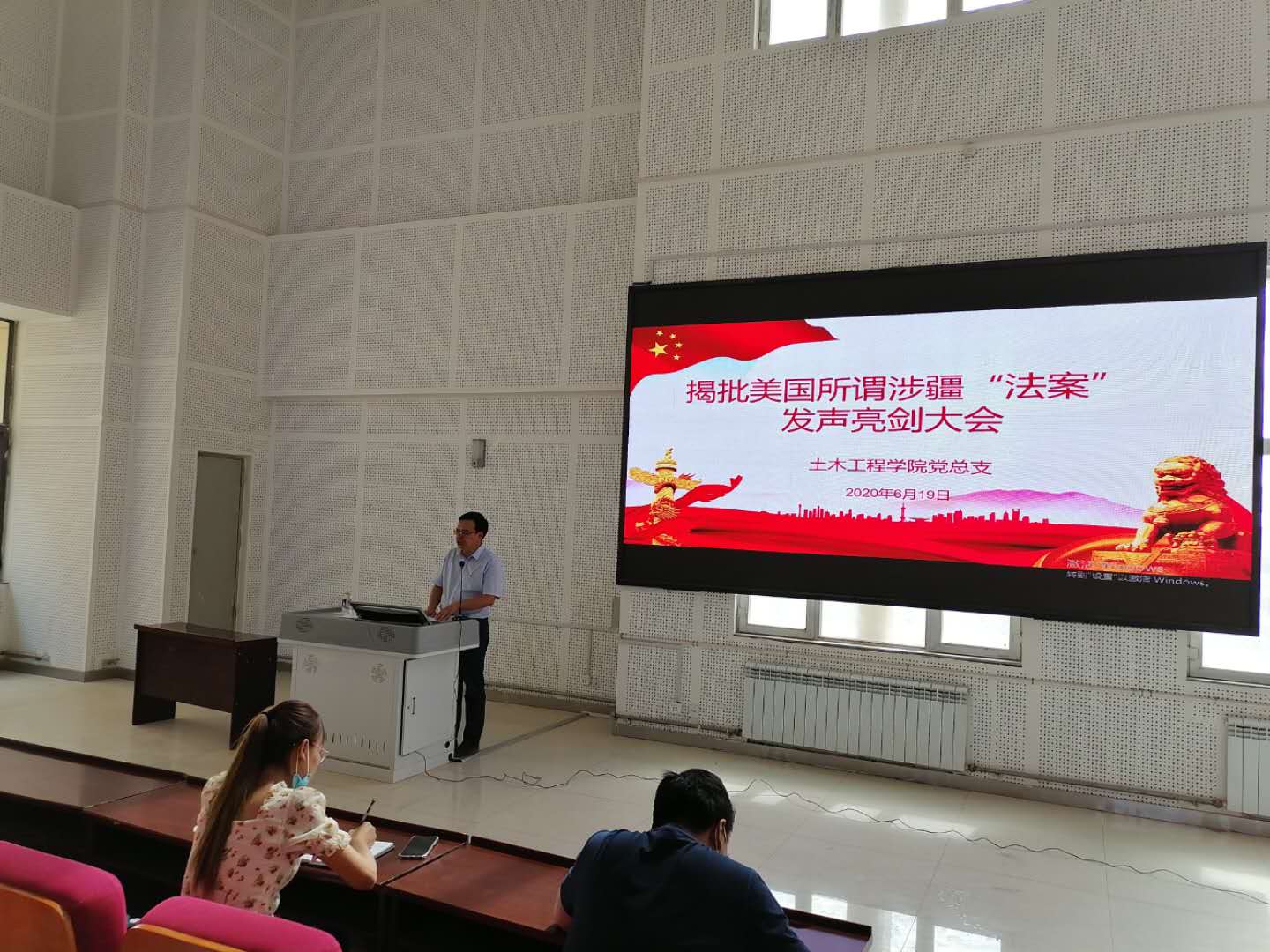 6月19日下午,我院党总支召开主题党日活动,强烈谴责美将所谓涉疆“法案”签署成法。院领导班子成员、援疆教师、全体教职工和学生党员参加了会议,会议由学院党总支书记周振鑫主持。